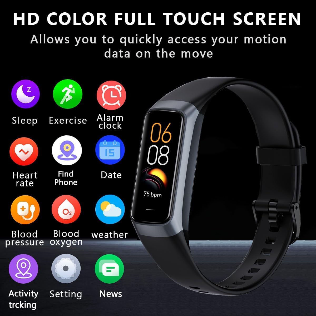 The 1.1″ AMOLED Touch Color Screen ensures a crystal-clear display of your stats and notifications, making it easy to stay on top of your progress. The waterproof design allows you to wear this tracker in any environment, whether you’re sweating it out at the gym or taking a dip in the pool.